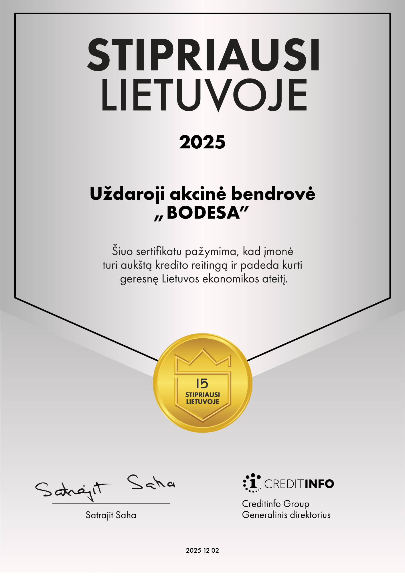 UAB "Bodesa" – tarp Lietuvos verslo lyderių geriausiųjų 2022 m.